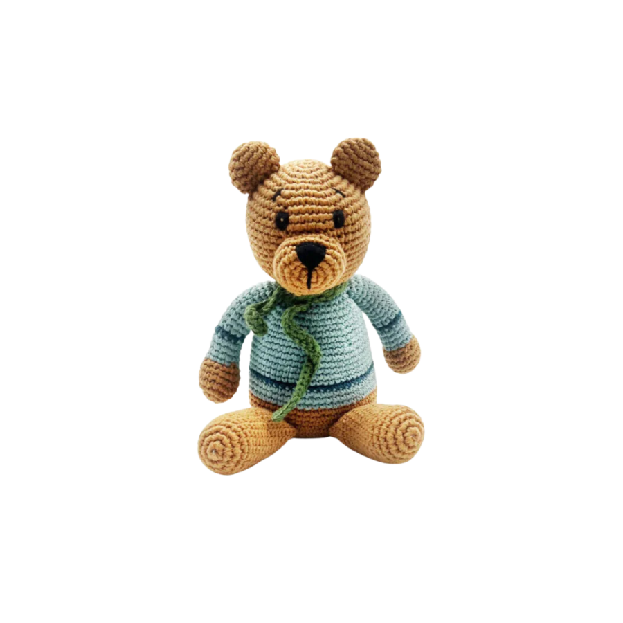 This is perfect for a baby shower gift, a nursery gift, or just a fun gift for new baby! We love Pebble's rattles because they are hand made, fair trade, and natural. Choose from an assortment of animals, fruits, or even weather-themed rattles. We love the classic Teddy Bear as it is sure to delight. And of course, what is a baby without a toy rattle?