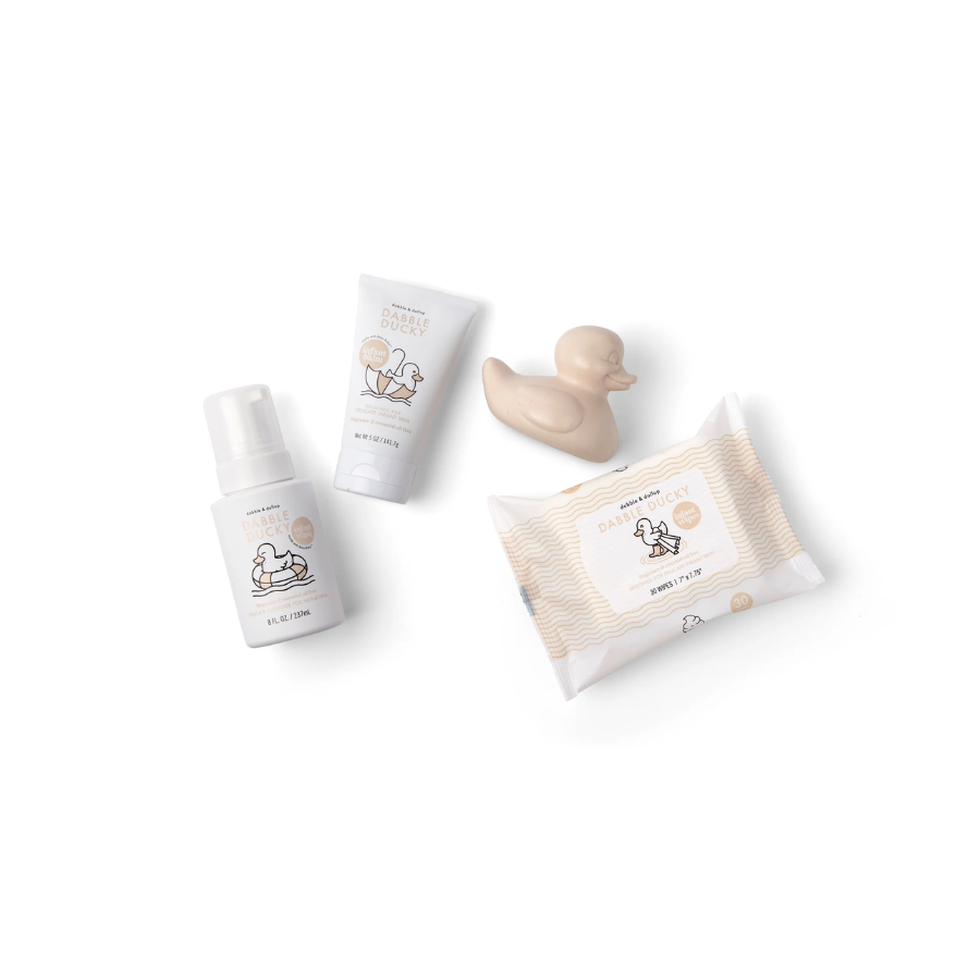 When it comes to bath time, it should be fun AND safe for baby. In terms of cuteness and effectiveness, our favorite brands Dabble & Dollop and Earth Mama rise to the top. Free of harmful chemicals and made specifically to ensure bath time is a breeze, these products are loved by mom and baby alike. This kit allows you to try a little of everything, including infant wash, nourishing balm, sensitive skin baby wipes and of course, the classic ducky bath toy.